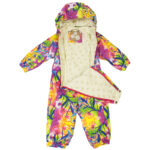 Dailus pavasarinis-rudeninis vienos dalies kombinezonas kūdikiams. Kombinezonas yra be pašiltinimo ir turi minkštą medvilninės flanelės pamušalą. Mėgstamiausi mažų tyrinėtojų kombinezonai turi du ilgus užtrauktukus, kad būtų patogiau apsivilkti ir nevaržytų judesių, o prireikus lengvai galite atsegti gobtuvą. Visi 68–80 dydžių kombinezonai turi atlenkiamus atvartus, todėl keliaujant mažesniais vežimėliais nereikalingos pirštinės ar batai. Šviesą atspindinčios detalės suteikia saugumo tamsesniu metu, o klijuotos sėdimosios dalies ir šoninės siūlės išlaiko kūną sausą. Be to, kombinezonas turi atsegamus silikoninius laikiklius ant bato, kurie neleidžia vandeniui patekti į vidų.