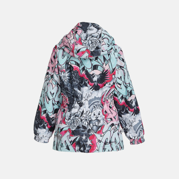 Vaikiška neperšlampama ir neperpučiama striukė. Orui laidus išorinis audinys. Rankogaliuose, gobtuvo krašte ir nugaros dalyje ties juosmeniu įsiūta guminė juostelė. Nuimamas gobtuvas pritvirtinamas prie apykaklės spaudėmis. Priekyje ir šonuose atšvaito detalės.
