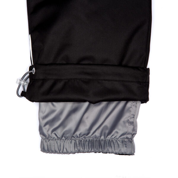 Vaikiškas striukės ir kelnių komplektas Neperšlampamas ir neperpučiamas, orui laidus viršutinis audinys Striukės ir kelnių vidinė pusė iš minkšto pamušalinio audinio Rankovių apačioje ir ant juosmens įsiūta guminė juostelė Nuimamas gobtuvas prie apykaklės prisegamas kibiu lipduku Gobtuvas apkraštuotas nuimamu dirbtiniu kailiu Kelnės turi nuimamas ir reguliuojamas elastines petnešas Juosmenyje įsiūta guminė juostelė Klešnių apačioje apsaugos nuo sniego Klešnių apačioje įsiūta guminė juostelė su fiksatoriais Vandeniui atsparios klijuotos siūlės Ant striukės ir kelnių šviesą atspindinčios detalės