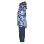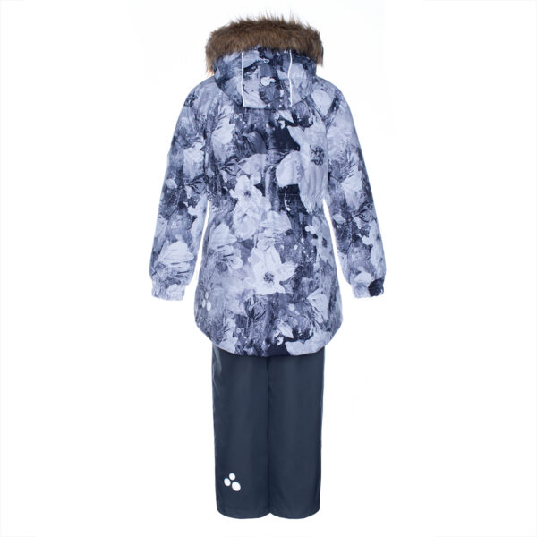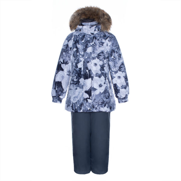 Vaikų striukės ir kelnių komplektas. Nepralaidus vandeniui ir vėjui, kvėpuojantis viršutinis audinys. Minkštas tinklelinis pamušalas striukės ir kelnių viduje. Elastinė juosta rankovių galuose ir juosmenyje. Nuimamas kapišonas su spragteliais. Nuimama dirbtinio kailio apdaila kapišone. Kelnės turi nuimamas elastines ir reguliuojamas petnešas. Elastinė juosta juosmenyje. Sniego getos kojų galuose. Virvelės tunelis su užraktais kojų galuose. Nepralaidžios vandeniui hermetizuotos siūlės. Atšvaitiniai elementai tiek striukėje, tiek kelnėse.