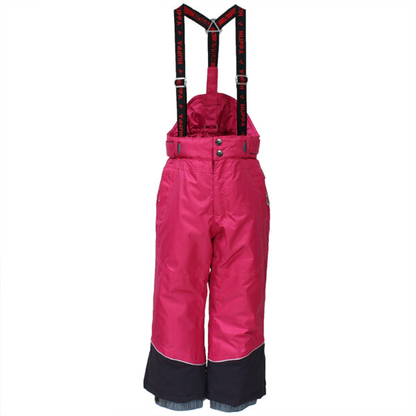 Vaikiškos žiemos kelnės. Madingo kirpimo kelnės turi nuimamus petnešėles, užtrauktukinius kišenes ir sniego apsaugą apačioje. Kelnės turi 160g šiluminio užpildo.