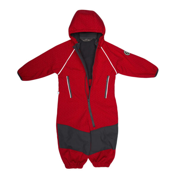 Softshelio vaikiškas kombinezonas dėl savo savybių yra tinkamas įvairiausioms oro sąlygoms. Softshell audinio išorinis sluoksnis – drėgmei atspari medžiaga, kuri yra elastinga ir pasižymi labai geromis atsparumo mechaniniam dilimui savybėmis. Vidurinis Softshell audinio sluoksnis – laminatas, kuris yra atsparus vandeniui ir laidus orui. Unikali medžiaga, kuri sudaryta iš daugybės mikroporų. Šios sandaros dėka, vandens lašai neprasiskverbia per Softshell audinį, o drėgmė (prakaitas) lengvai išgaruoja. Vidinis Softshell audinio sluoksnis – flyso audinys, kuri yra labai minkštas, neerzina odos ir suteikia komforto jausmą. Neperšlampas, nepraleidžiantis vėjo, laidus orui ir ypatingai komfortiškas Softshellio audinio lietpaltis