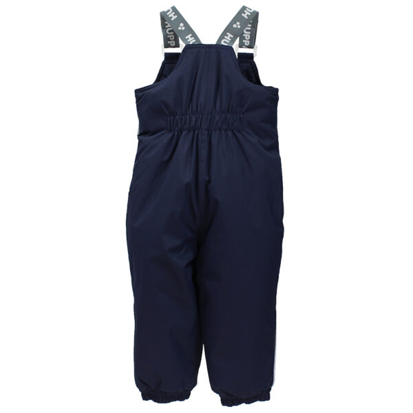 Vaikiškos neperšlampančios ir vėjui atsparios žiemos kelnės su 160 g pašiltinimu. Kvėpuojantis audinys. Minkštas flanelės pamušalas. Kelnės su petnešomis ir elastinėmis reguliuojamomis petnešomis. Elastinė juosta liemens srityje ir kelnių galuose. Užlydyta centrinė nugaros siūlė. Ilgas užtrauktukas ir elastingas apatinis kraštas palengvina mažylio rengimą. Elastinės pėdų juostelės. Šviesą atspindintys elementai ant audinio.