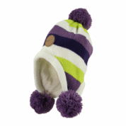 Mergaičių megzta dryžuota žiemos kepurė. Kepurės pamušalas iš medvilninio trikotažo, viršus iš akrilo siūlų. Linksmi kutukuai.
