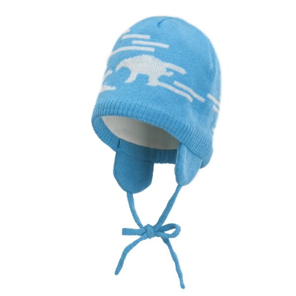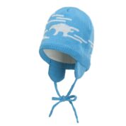 Mažylių megzta žiemos kepurė. Kepurės pamušalas iš medvilnės trikotažo, viršus iš akrilo siūlų. Patogesniam dėvėjimui kepurė turi virvutes ir mažus skliaustus, kurie apsaugo ausis.