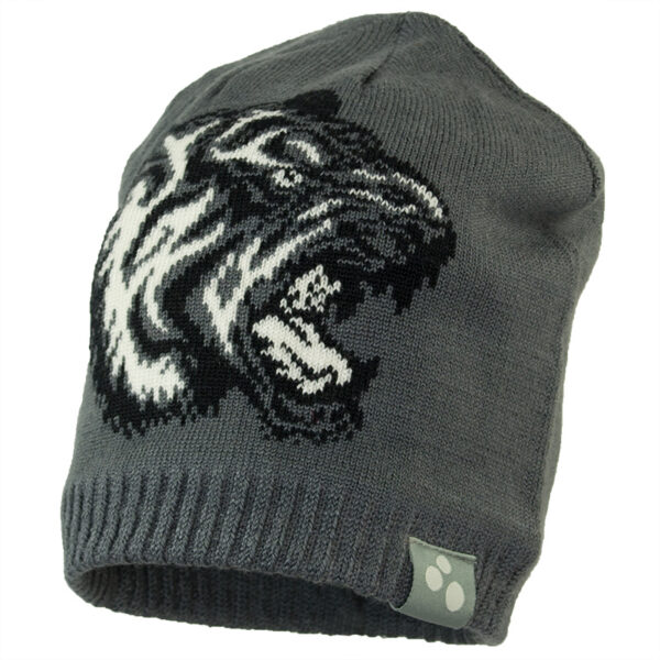 Poiste kootud müts Tigery on äge! Selle koostis on 50% meriinovill, 50% akrüül ning vooder on puuvillasest trikotaažist. Mütsi esikülge kaunistab metsiku tiigri kujuline pilt.Ideaalne müts väikestele ja suurtele tiigripoistele!