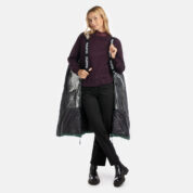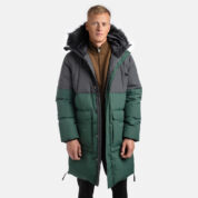 Unisex neperšlampamas ir neperpučiamas pūkinis paltas. Laidus orui išorinis audinys pagamintas iš perdirbto pluošto. Vidinėje palto pusėje minkštas pamušalo audinys. Užpildas – pūkai ir plunksnos. Tamprūs rankogaliai. Priekyje spaustukų juostele paslėptas dvikryptis užtrauktukas. Paltas turi nuimamas elastines petnešas. Šviesą atspindinčios detalės ant viršutinio audinio.