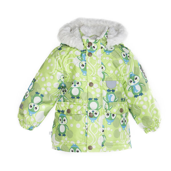 Vaikiška dygsniuota striukė, pagaminta iš minkšto audinio su 200g pašiltinimu. Gobtuvas su nuimamu dirbtiniu kailiu saugo nuo šalto vėjo, o elastingi rankogaliai apsaugo nuo sniego. Kišenės užsegamos spaudėmis.