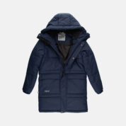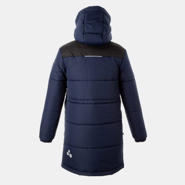 Vaikiškas neperšlampamas ir neperpučiamas žieminis paltas su 300 g šiltinamuoju sluoksniu. Laidus orui išorinis audinys pagamintas iš perdirbto pluošto. Vidinėje palto pusėje minkštas pamušalo audinys. Rankogaliuose guminės juostelės. Priekyje spaustukų juostele paslėptas dvikryptis užtrauktukas. Juosmens srityje guminės virvelės tunelis su stabdikliais. Šviesą atspindinčios detalės ant viršutinio audinio.