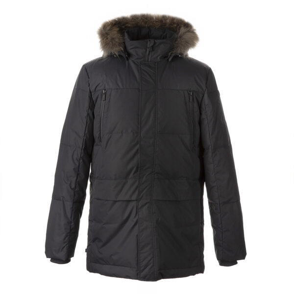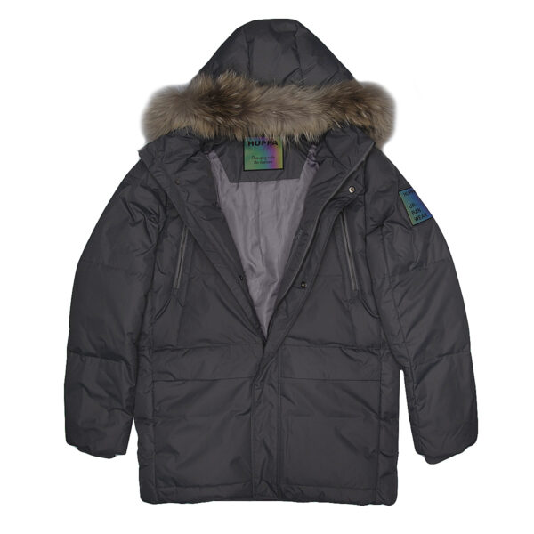 Vyriška pūkinė striukė su vėjo ir vandens nepraleidžiančiu viršutiniu audiniu ir taftos pamušalu. Striukės užpildas: 50% plunksnų ir 50% pūkų. Vidiniai rankogaliai rankovėse išlaiko šilumą ir vėjuotu oru. Šviesą atspindinčios detalės ant išorinio audinio. Nuimamas gobtuvas pritvirtinamas prie apykaklės spaudėmis, natūralaus kailio kraštas taip pat nuimamas.