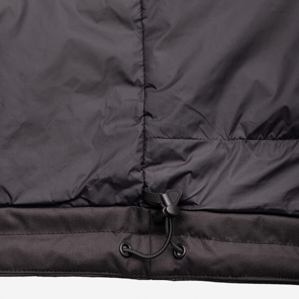 Insulated (40 g) water- and windproof jacket for men, suitable for spring and autumn. The outer fabric is breathable. The lining of the jacket is soft. Removable hood, zippered pockets and adjustable sleeve cuffs. Waterproof taped seams. Air vents under the arms. The outer fabric is decorated with reflective details.