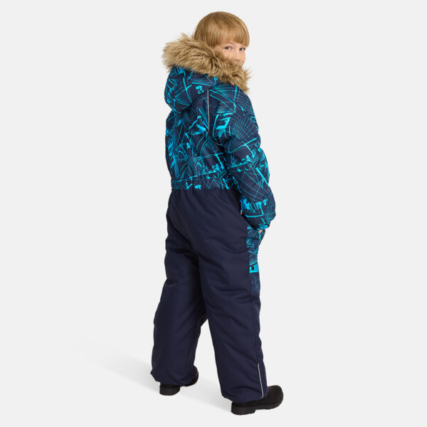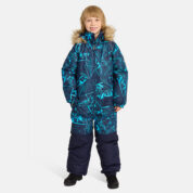 Vaikiškas neperšlampamas ir neperpučiamas žieminis kombinezonas su 200 g šiltinamuoju sluoksniu. Laidus orui išorinis audinys. Kombinezono vidinė dalis iš minkšto audinio. Guminė juostelė rankogaliuose, klešnių apačioje ir ant gobtuvo krašto. Nuimamas gobtuvas prie apykaklės prisegamas užtrauktuku. Juosmens srityje guminė juosta su kilpomis. Neperšlampamos dengtos siūlės. Su elastingomis pėdos gumelėmis. Šviesą atspindinčios detalės ant viršutinio audinio.
