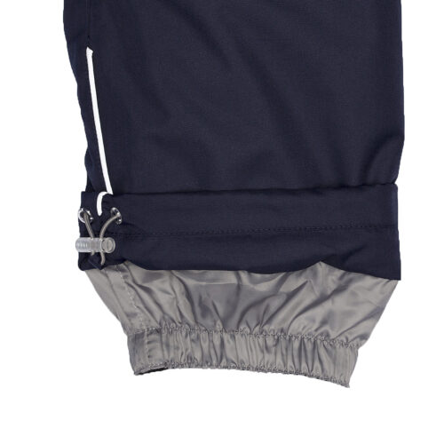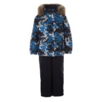 Vaikiškas striukės ir kelnių komplektas. Neperšlampamas ir neperpučiamas, orui laidus viršutinis audinys. Striukės ir kelnių vidinė pusė iš minkšto pamušalinio audinio. Rankovių apačioje ir ant juosmens įsiūta guminė juostelė. Nuimamas gobtuvas prie apykaklės prisegamas kibiu lipduku. Gobtuvas apsiūtas dirbiniu kailiu. Kelnės aukštesniu liemeniu ir turi reguliuojamas elastines petnešas. Juosmenyje įsiūta guminė juostelė. Klešnių apačioje įsiūta guminė juostelė su fiksatoriais. Vandeniui atsparios klijuotos siūlės. Kelnėse nėra klešnių vidinės siūlės. Ant striukės ir kelnių šviesą atspindinčios detalės.