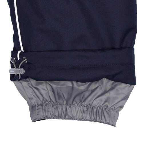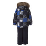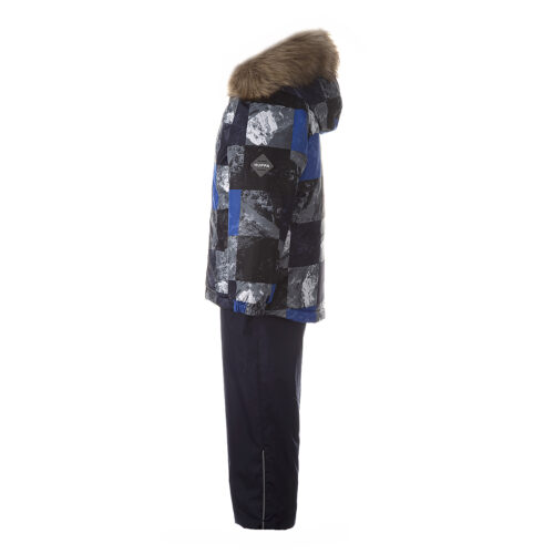 Vaikiškas striukės ir kelnių komplektas. Neperšlampamas ir neperpučiamas, orui laidus viršutinis audinys. Striukės ir kelnių vidinė pusė iš minkšto pamušalinio audinio. Rankovių apačioje ir ant juosmens įsiūta guminė juostelė. Nuimamas gobtuvas prie apykaklės prisegamas kibiu lipduku. Gobtuvas apsiūtas dirbiniu kailiu. Kelnės aukštesniu liemeniu ir turi reguliuojamas elastines petnešas. Juosmenyje įsiūta guminė juostelė. Klešnių apačioje įsiūta guminė juostelė su fiksatoriais. Vandeniui atsparios klijuotos siūlės. Kelnėse nėra klešnių vidinės siūlės. Ant striukės ir kelnių šviesą atspindinčios detalės.