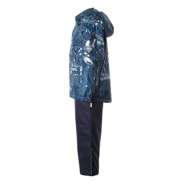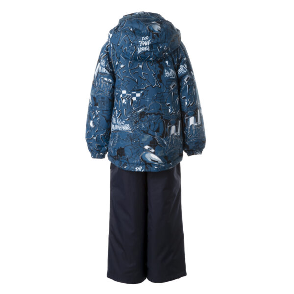 Berniukų dviejų dalių komplektas yra idealus tiek kieme, tiek ant slidinėjimo kalno! Didelis spalvų ir raštų pasirinkimas. Komplektas turi minkštą taftos ir fliso pamušalą, o viršutinis audinys yra atsparus vėjui ir vandeniui, pasižymi geriausiomis savybėmis. Dailaus kirpimo striukė turi lengvą 140 g pašiltinimą, o kelnės –80 g, kad būtų patogu dėvėti. Norint užtikrinti sausumą, kelnės turi klijuotas siūles sėdimojoje dalyje, paaukštintą juosmenį, papildomą elastingą gumą viduje, kad sniegas nepatektų į batus. Nusegamas gobtuvas be kailiuko yra saugus žaisti lauke – jis tvirtinamas kniedėmis. Patogesniam dėvėjimui kelnės turi reguliuojamas elastines petnešas ir sutraukiančią virvelę klešnės apačioje. Netrukus mėgausitės žaidimais kieme!