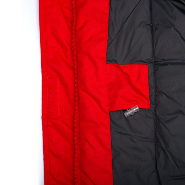 Moteriška neperšlampama ir neperpučiama žieminė parka. Orui laidi išorinė medžiaga. Vidinė parkos dalis iš minkšto pamušalinio audinio. Nuimamas gobtuvas prie apykaklės prisegamas kibiu lipduku. Rankovių apačioje tamprus rankogalis. Juosmenyje įsiūta guminė juostelė su fiksatoriais. Vandeniui atsparios klijuotos siūlės. Gobtuvas apsiūtas dirbiniu kailiu. Viršutinis audinys su šviesą atspindinčiomis detalėmis.