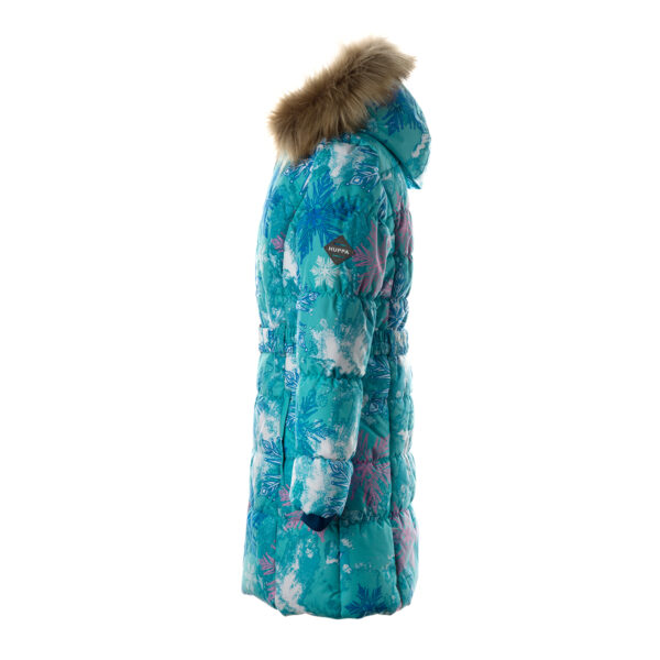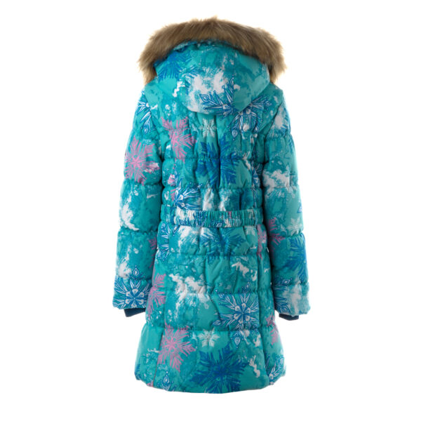 Vaikiškas neperšlampamas ir neperpučiamas žieminis paltas Orui laidi išorinė medžiaga Vidinė palto dalis iš minkšto pamušalinio audinio Nuimamas gobtuvas prie apykaklės prisegamas kibiu lipduku Rankovių apačioje tamprus rankogalis Priekyje dvipusis užtrauktukas Gobtuvas apsiūtas dirbiniu kailiu Viršutinis audinys su šviesą atspindinčiomis detalėmis