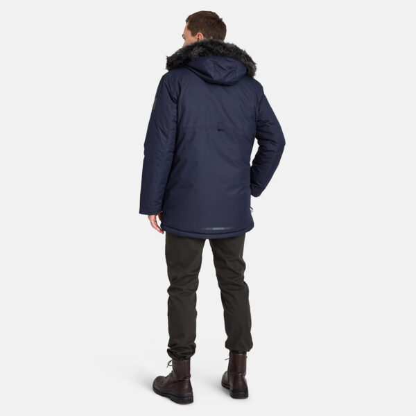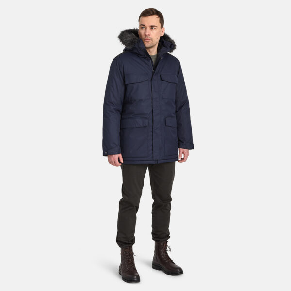 Vyriška neperšlampama ir neperpučiama žieminė striukė su dirbtiniu kailiuku ant gaubto. Orui laidi išorinė medžiaga. Vidinė striukės dalis iš minkšto pamušalinio audinio. Reguliuojamas gobtuvas,nusisega ir kailis ir gobtuvas. Rankogaliai turi trikotažinį manžetą. Rankovių apačia reguliuojama kniedėmis. Dvipusis užtrauktukas papildomam komfortui. Magnetu užsegamos kišenės.