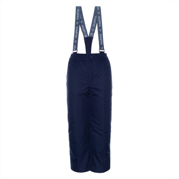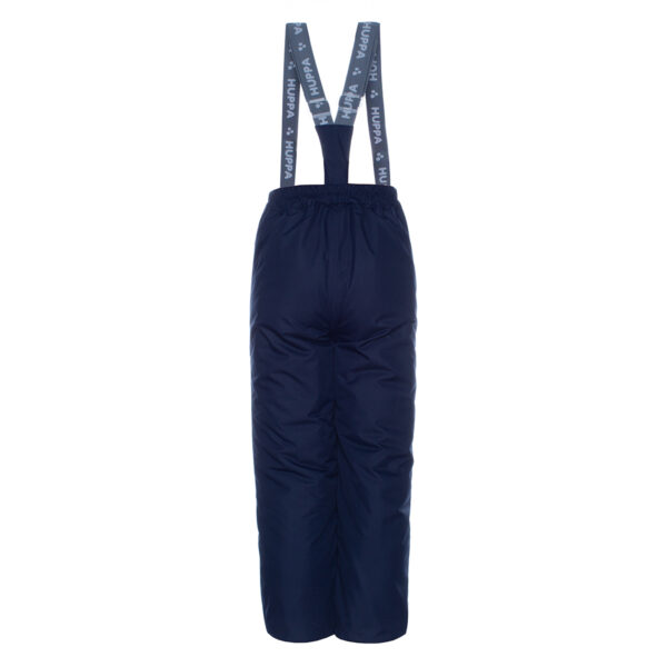 Vaikiškos neperšlampamos ir neperpučiamos kelnės Orui laidi išorinė medžiaga Kelnių vidinė pusė iš minkšto pamušalinio audinio Reguliuojamos nuimamos petnešos Juosmenyje įsiūta elastinga guminė juostelė Klešnių apačioje įsiūta guminė juostelė su fiksatoriais ir apsauga nuo sniego Vandeniui atsparios siūlės Kelnių apačioje šviesą atspindinčios detalės