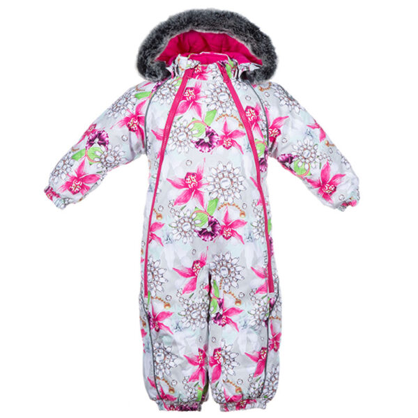 Zīdaiņu moderna piegriezuma ūdens un vēja necaurlaidīgs ziemas kombinezons. Elpojošs virsējais audums. Kombinezona odere no mīksta flaneļa auduma. Piedurkņu un staru galos un muguras daļā iestrādāta gumijas apdare. Noņemamā kapuce pie apkakles stiprināma ar velkro aizdari, kas pastiprina drošību rotaļājoties brīvā dabā. Pieejams izmēros 68-80, ērti grozāmas piedurknes. Ūdens necaurlaidīgi līmēti izšuvumi. Komplektā silikona un gumijas pazolītes. Kapucei mākslīgās kažokāds mala. Virsējā auduma izcilā kvalitāte ļauj bērnam rotaļāties brīvā dabā jebkuros laikapstākļos. Lai nodrošinātu sausumu, staras ir apstrādātas ar dubulto slāni. Vairākas atstarojošās detaļas uz virsējā auduma tumšā laikā nodrošina redzamību no visām pusēm.