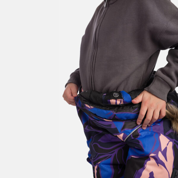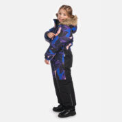Vaikiškas neperšlampamas ir neperpučiamas kombinezonas. Orui laidi išorinė medžiaga. Kombinezono pamušalas iš minkšto audinio. Ant rankogalių ir klešnių galuose įsiūta guminė juostelė. Nuimamas gobtuvas prie apykaklės prisegamas kibiu lipduku. Priekyje įsiūtos kišenės su užtrauktuku. Vandeniui atsparios klijuotos siūlės. Komplekte yra elastingos guminės juostelės kelnėms prisegti prie batų. Gobtuvas apkraštuotas nuimamu dirbtiniu kailiu. Viršutinis audinys su šviesą atspindinčiomis detalėmis.