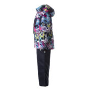 Vaikiškas striukės ir kelnių komplektas Neperšlampamas ir neperpučiamas, orui laidus viršutinis audinys Striukės ir kelnių vidinė pusė iš minkšto pamušalinio audinio Rankovių apačioje, juosmenyje ir gobtuvo krašte įsiūta guminė juostelė Nuimamas gobtuvas prie apykaklės prisegamas kibiu lipduku Kelnės aukštesniu liemeniu ir turi reguliuojamas elastines petnešas Juosmenyje įsiūta guminė juostelė Klešnių apačioje įsiūta guminė juostelė su fiksatoriais Vandeniui atsparios klijuotos siūlės Kelnėse nėra klešnių vidinės siūlės Ant striukės ir kelnių šviesą atspindinčios detalės