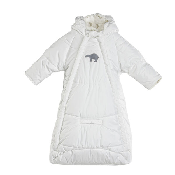 Šiltas kūdikio vokelis-miegmaišis su maloniu lengvu pašiltinimu saldžiam pietų miegui. Kūdikio miegmaišyje yra minkštas medvilnės pamušalas ir kvėpuojantis bei vandeniui atsparus išorinis audinys, tinkantis mūsų klimatui. Kūdikį lengva įdėti dviejų pilno ilgio užtrauktukų dėka, o taip pat vokelį patogu naudoti vairuojant, tvirtinant saugos diržą per specialaiai tam skirtą angą. Keliais judesiais rankogalius galima užlenkti arba atlenkti.