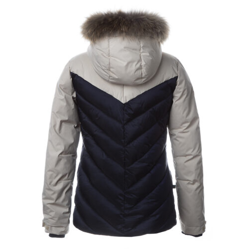 Moteriška žieminė striukė iš minkšto audinio Neperšlampamas ir neperpučiamas viršutinis audinys Priekyje įsiūtos kišenės su užtrauktuku Nuimamas reguliuojamas gobtuvas prie apykaklės prisegamas kibiu lipduku Reguliuojama rankovių apačia Striukės užpildas iš naujoviškos perdirbtos, plunksnų užpildo savybes imituojančios medžiagos Medžiaga šilta, greitai džiūsta ir nesukrinta po skalbimo Puiki alternatyva natūraliam plunksnų užpildui Gobtuvas apkraštuotas nuimamu natūraliu kailiu Ant rankovių šviesą atspindinčios detalės
