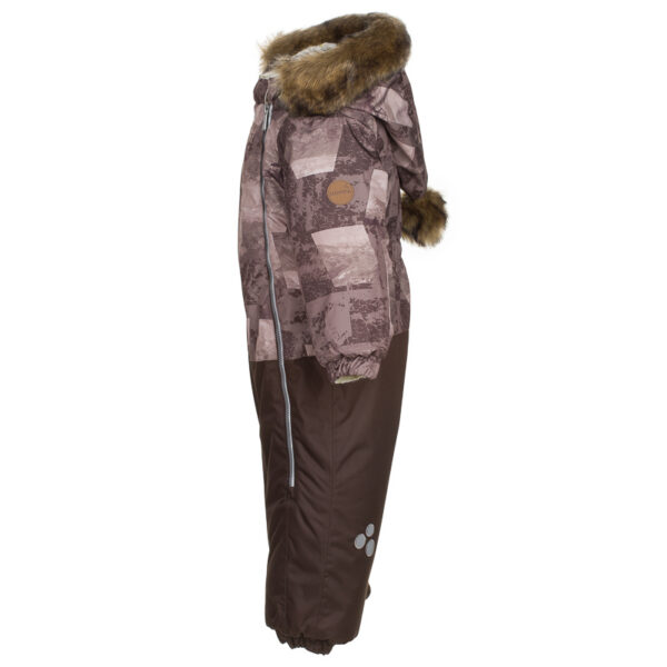 toddler´s winter overall with 300g of insulation. The overall has a soft cotton flannel lining and a breathable and waterproof outer fabric that is perfectly suited to our climate. The overall has a seat seam and side seams along the waistline taped to be waterproof. The overall has a removable hood with a separately removable fur, a zippered pocket for storing treats and silicone rubber under the sole. Up to size 80, the sleeve ends and bottom hem can be rolled back in a few movements, and gloves and boots are not needed.