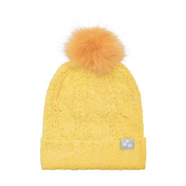 Knitted hat. Made of 70% acrylic and 30% polyamide.