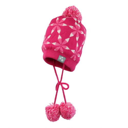 Knitted winter hat for toddlers. The lining of the hat is made of cotton jersey and the top is made of 50% merino wool, 50% acrylic yarn.