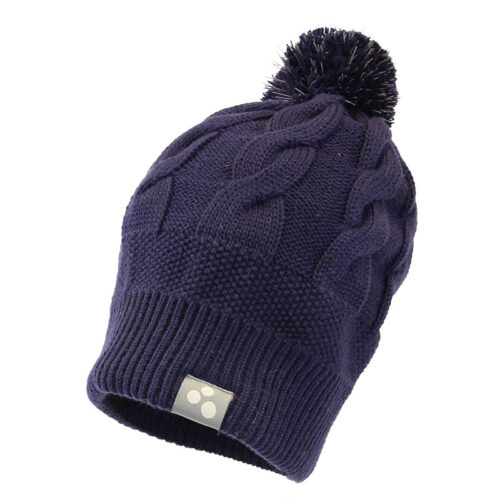 Tassel hat for girls. The hat is knitted from 50% merino wool, 50% acrylic. The nice ribbed hem protects the ears from the cold wind. The hat´s tassel contains reflective thread.