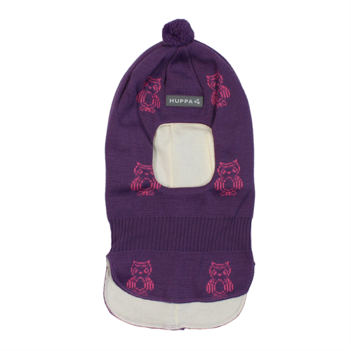 Children’s merino wool blend knit hat-scarf. Cotton jersey on the inside. Reflective Huppa logo.
