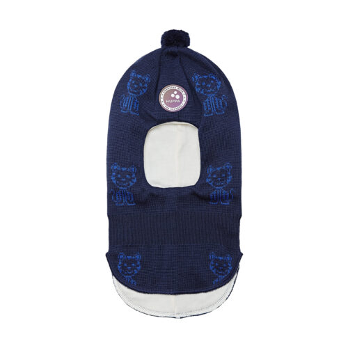 Children’s merino wool blend knit hat-scarf. Cotton jersey on the inside. Reflective Huppa logo.