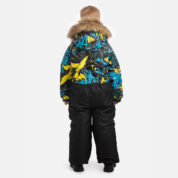 Bērnu ūdens un vēja necaurlaidīgs kombinezons. Gaisu caurlaidīgs virsējais audums. Kombinezonam mīksta odere. Piedurknēs un staru malās iestrādāta gumijas apdare. Noņemamā kapuce pie apkakles stiprināma ar velkro aizdari. Priekšpusē apšūtas kabatas. Ūdens necaurlaidīgi līmēti izšuvumi. Komplektā elastīgas pazolītes. Kapucei noņemama mākslīgās kažokādas mala. Auduma virspusē atstarojošas detaļas.