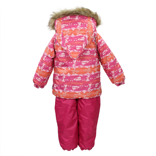 Klasisks divdaļīgs komplekts ar vatelīna pildījumu mazuļiem. Mīksta kokvilnas flaneļa odere, gaisa caurlaidīgs un ūdeni atgrūdošs virsējais audums. Bikses ar paaugstinātu vidukļa daļu un nolīmētu sēžas šuvi. Noņemama kapuce ar kažokādas apmali, regulējamas gumijas lences un ir divas kabatas.