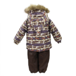 Klasisks divdaļīgs komplekts ar vatelīna pildījumu mazuļiem. Mīksta kokvilnas flaneļa odere, gaisa caurlaidīgs un ūdeni atgrūdošs virsējais audums. Bikses ar paaugstinātu vidukļa daļu un nolīmētu sēžas šuvi. Noņemama kapuce ar kažokādas apmali, regulējamas gumijas lences un ir divas kabatas.
