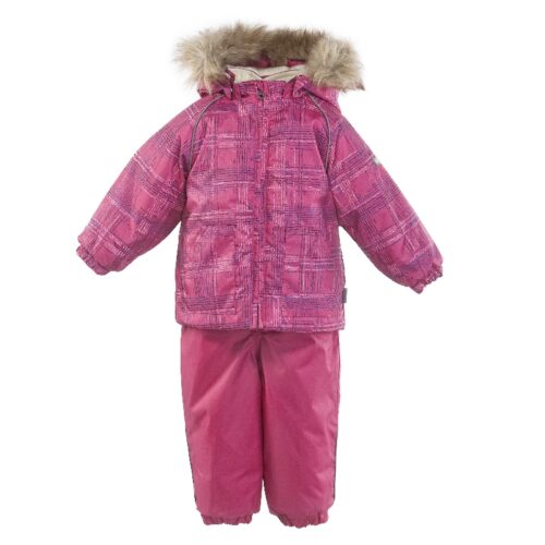 Klasisks divdaļīgs komplekts ar vatelīna pildījumu mazuļiem. Mīksta kokvilnas flaneļa odere, gaisa caurlaidīgs un ūdeni atgrūdošs virsējais audums. Bikses ar paaugstinātu vidukļa daļu un nolīmētu sēžas šuvi. Noņemama kapuce ar kažokādas apmali, regulējamas gumijas lences un ir divas kabatas.