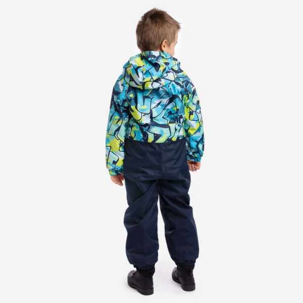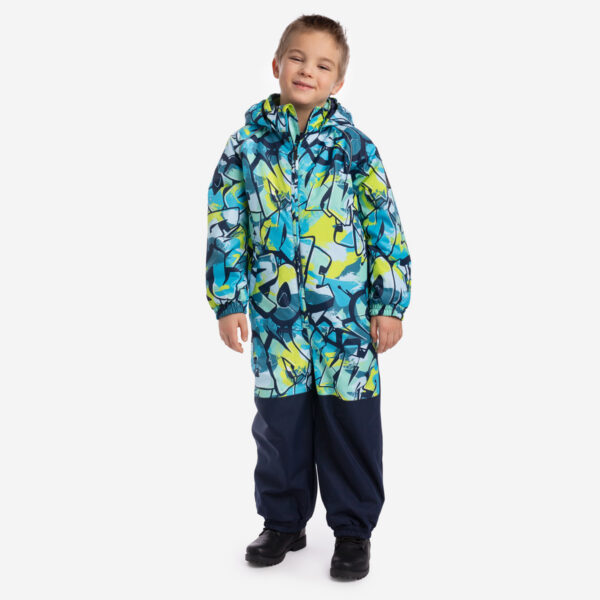 Siltināts (40 g) ūdens un vēja necaurlaidīgs kombinezons bērniem, piemērots pavasarim un rudenim. Kombinezona virsējais slānis ir izgatavots no elpojoša materiāla. Tam ir iešūtas elastīgās lentes uz piedurknēm, potītēm un kapuci. Noņemamo kapuci var piestiprināt pie apkakles ar spiedpogām. Kombinezonam ir iešūta gumija vidukļa līnijā un ūdensizturīgas aplīmētas vīles. Komplektā ietilpst elastīgas pēdu siksniņas. Tas ir dekorēts ar atstarojošām detaļām.