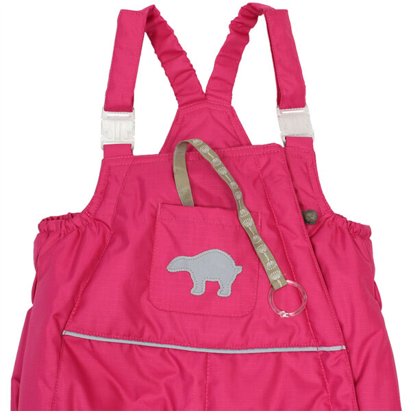 High-waisted, stretchy trousers for toddlers made of softer fabric. The trousers have a comfortable “Coral-fleece” lining and a breathable and waterproof outer fabric that is well suited to our climate. To make dressing your little one more comfortable, the trousers have detachable suspenders and a long zipper. The trousers have a nice pocket on the chest for storing the most necessary things and removable silicone rubber at the bottom to prevent snow from getting into the boot.