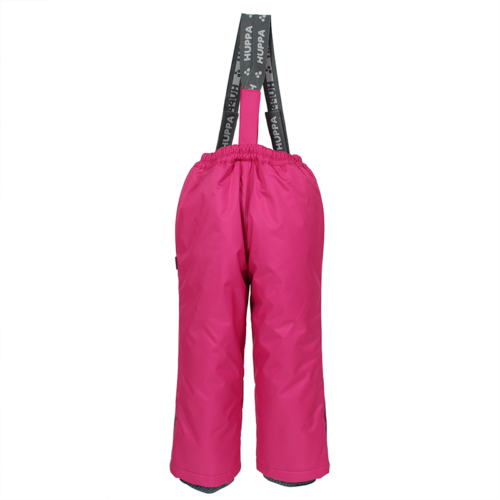 Children’s waterproof and windproof pants. Breathable fabric. Soft mesh lining on the inside of the pants. Adjustable removable braces. Integrated elastic band at waist. Drawstring tunnel and snow gaiters at leg ends. Waterproof taped seams. Reflective elements at the bottom.