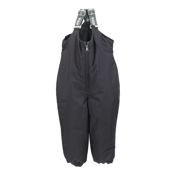 Children’s waterproof and windproof winter pants with 160 g of insulation. Breathable fabric. Soft flannel lining. The bib pants have elastic adjustable braces Integrated elastic band on waist and at leg ends. Taped centre-back seam. The long zipper and elastic bottom edge make it easier to dress the toddler. Elastic foot straps. Reflective elements on fabric.