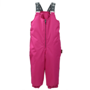 Children’s waterproof and windproof winter pants with 160 g of insulation. Breathable fabric. Soft flannel lining. The bib pants have elastic adjustable braces Integrated elastic band on waist and at leg ends. Taped centre-back seam. The long zipper and elastic bottom edge make it easier to dress the toddler. Elastic foot straps. Reflective elements on fabric.