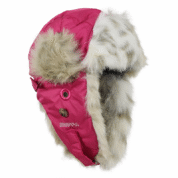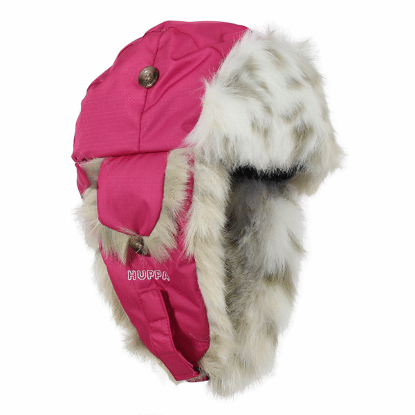 Children´s winter hat with light padding. The hat has a faux fur lining and a fairly breathable and waterproof polyester outer fabric. For more comfortable wearing, the hat has an adjustable neck section and earflaps attached with Velcro under the chin. Both large and small earflaps can be attached to the top of the head, which makes one hat available in several different ways.