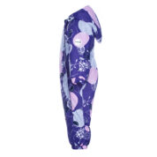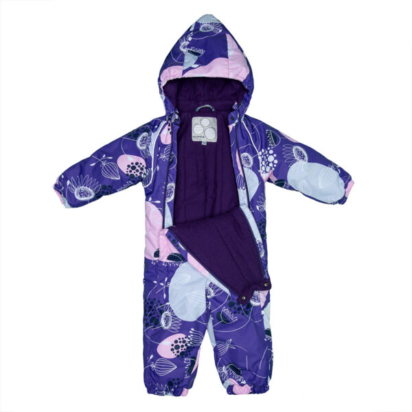 The overall is suitable both for babies or for toddlers who can already walk. The overall has windproof and waterproof top fabric, nice and soft cotton flannel lining inside, and 200 g of insulation. Breathable fabric. Integrated elastic band at sleeve and leg ends and around hood. Elastic foot straps. Sleeve and leg ends can be conveniently rolled down in sizes 68–80. The long zippers make it easy to dress the child, the seams on the bottom and sides are taped and leg ends are covered with the top fabric from the inside to ensure the child stays dry. Reflective elements have been added so that the child is visible in the dark. The removable hood is safe for paying outside – it is secured by press-studs to avoid getting stuck.