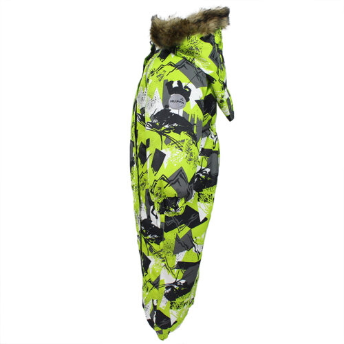Children’s waterproof and windproof overall. Breathable fabric. Suitable for both babies or for toddlers who can already walk. Nice and soft flannel lining on the inside. Integrated elastic band at sleeve and leg ends. Removable hood attaches to the collar with press-studs to ensure safety when the wearer gets stuck. Sleeve and leg ends can be conveniently rolled down in sizes 68–80. Waterproof taped seams. The overall has no inner leg seam. Elastic foot straps. Removable faux fur trim on hood. Reflective elements on the fabric add safety when wearing in the dark.