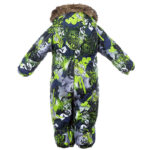 Children’s waterproof and windproof overall. Breathable fabric. Suitable for both babies or for toddlers who can already walk. Nice and soft flannel lining on the inside. Integrated elastic band at sleeve and leg ends. Removable hood attaches to the collar with press-studs to ensure safety when the wearer gets stuck. Sleeve and leg ends can be conveniently rolled down in sizes 68–80. Waterproof taped seams. The overall has no inner leg seam. Elastic foot straps. Removable faux fur trim on hood. Reflective elements on the fabric add safety when wearing in the dark.