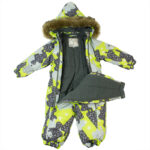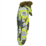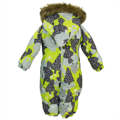 Children’s waterproof and windproof overall. Breathable fabric. Suitable for both babies or for toddlers who can already walk. Nice and soft flannel lining on the inside. Integrated elastic band at sleeve and leg ends. Removable hood attaches to the collar with press-studs to ensure safety when the wearer gets stuck. Sleeve and leg ends can be conveniently rolled down in sizes 68–80. Waterproof taped seams. The overall has no inner leg seam. Elastic foot straps. Removable faux fur trim on hood. Reflective elements on the fabric add safety when wearing in the dark.
