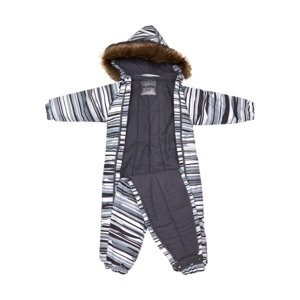 Bērnu ūdens un vēja necaurlaidīgs kombinezons Gaisu caurlaidīgs virsējais audums Piemērots kā mazuļiem, tā arī jau staigājošam mazulim Kombinezona iekšpusē mīkstā un patīkamā flaneļa odere Piedurknes un staras apstrādātas ar gumijas apdari Noņemamā kapuce pie apkakles stiprinās ar velkro aizdari, lai to varētu stingri piestiprināt Pieejams izmēros 68-80, ērti grozāmas piedurknes un staras Ūdens necaurlaidīgi līmēti izšuvumi Kombinezonam nav staru iekšējais apšuvums Komplektā elastīgas pazolītes Kapucei noņemama mākslīgās kažokādas mala Tumšā laikā papildus drošību sniedz uz auduma virspuses esošās atstarojošās detaļas