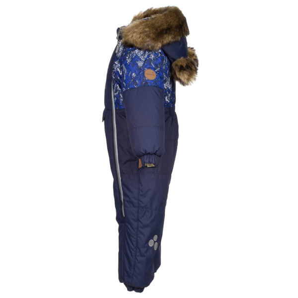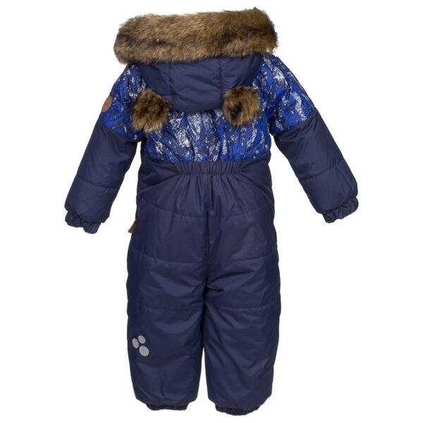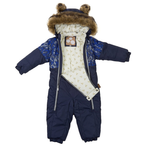 Toddler´s winter overall with 300g of insulation. The overall has a soft cotton flannel lining and a breathable and waterproof outer fabric suitable for our climate. The overall has a removable hood, and the fur on the hood can also be removed. Up to size 80, the sleeve cuffs and hem can be rolled back in a few movements, and gloves and boots are not needed.